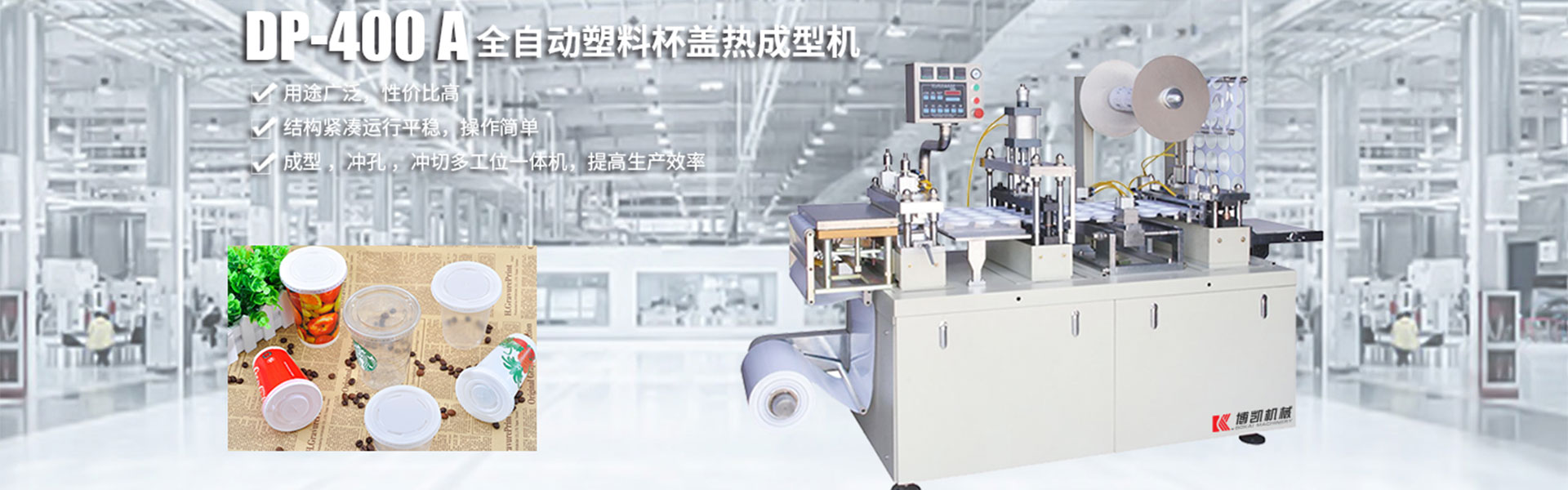 瑞安市博凱機(jī)械有限公司位于祖國的東海之濱,享有中國包裝機(jī)械城之譽(yù)的美麗海濱城市------瑞安。瑞安是中國著名的包裝機(jī)械、制藥機(jī)械生產(chǎn)基地。瑞安市博凱機(jī)械有限公司主營:一次性杯蓋機(jī),杯蓋成型機(jī),塑料杯蓋成型機(jī),全自動塑料成型機(jī);借助于其得天獨(dú)厚的資源優(yōu)勢,結(jié)合市場需求以及多年生產(chǎn)鋁塑包裝機(jī)技術(shù),吸取吸塑機(jī)的優(yōu)點(diǎn)創(chuàng)新研發(fā)的新型產(chǎn)品Dpp400F吹塑成型機(jī)!該機(jī)實(shí)現(xiàn)了放卷,成型,沖孔,沖裁,出料,收卷···
